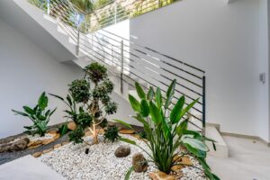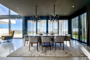 NIEUWBOUW LUXE VILLA IN FINESTRAT MET UITZICHT OP ZEE Nieuwbouw luxe villa met zeezicht in Sierra Cortina, Finestrat. Aangekomen bij de urbanisatie is er een natuurstenen muur met een hoogte van 7 meter en de automatische toegangspoorten tot de villa die uitkomt bij de overdekte garage op straatniveau met dubbele hoogte, natuurlijk licht en tuin met palmbomen van verschillende hoogtes van 180 m2, een glazen ruimte van 78 m2 met lift, binnentrap, garderobe en genoeg ruimte om fauteuils te plaatsen, deze ruimte om te bouwen tot kantoor of gewoon een wachtruimte voor bezoekers. De volgende verdieping van 190 m2 gesloten ruimte ligt onder het perceelniveau maar 3 meter boven het straatniveau en dus met natuurlijk licht. Zij is toegankelijk via een lift of trap binnen de villa, of via de trap buiten de garage, in het laatste geval heeft men alleen toegang tot de buitengangen, de installatieruimte of de hoofddeur van deze verdieping. Binnen deze verdieping vinden we 4 ruime slaapkamers, woonkamer met Engelse patio van 17 m2 met de trap naar het perceel, wasruimte, 2 badkamers, buitengangen van 40 m2 en installatieruimte. Als we naar de hoofdverdieping gaan via 3 toegangswegen zien we een woonkamer van 130 m2 met dubbel licht, open keuken, gastentoilet, panoramisch uitzicht op zee, en zwembad van 54 m2 van laminaat, een mooie tuin en 2 grote overdekte terrassen. Naar de slaapverdieping gaan we met de lift of de binnentrap waar we een Master Bedroom zien van meer dan 50 m2 met en-suite badkamer, kleedkamer en terras, twee slaapkamers van ongeveer 20 m2 elk, een badkamer en het terras voor deze slaapkamers. Villa is uitgerust met Led exterieur en interieur, vloerverwarming, domotica, hoge Gamma kristallen, gecentraliseerde airconditioning, automatische rolluiken, hoge plafonds en nog veel meer: Woonkamer- 95 m2 Slaapkamers- 8 (hoofd slaapkamer 52 m2 en tweede slaapkamer 20 m2) Badkamers- 5 Perceel- 890 м2 Gebouwd- 998 м2 Zwembad- 12 X 5 Vier verdiepingen Tuin (20 m2) – volledig afgewerkt met automatisch irrigatiesysteem Lift (Otis) in het huis Vloerverwarming Domotica (controle van airconditioning, vloerverwarming, binnen- en buitenverlichting, zonwering) Elektrische jaloezieën Buiten- en binnenverlichting merk Siemens Hoge plafonds tot 3,20 m hoog Indrukwekkend uitzicht op zee Een verdieping voor gasten Aerothermische verwarming Volledig ingerichte keuken met eiland Ingebouwde kasten Porseleinen tegelvloer Muur met natuursteen handgesneden Garage voor 4 voertuigen met automatische deuren 160 m2 + inkomhal 78 m2 Open parkeerplaats 37 Villa gelegen in het Sierra Cortina resort complex, naast twee golfbanen, themaparken, een groot winkelcentrum en een paar minuten van de stranden van Benidorm. Finestrat ligt in de regio Marina Baixa van de Costa Blanca, dicht bij het naburige Benidorm en op ongeveer 40 kilometer van de stad Alicante en de internationale luchthaven. Het dorp ligt op de berghelling van Puig Campana en biedt een prachtig uitzicht op de bergen, de kust en de Middellandse Zee.