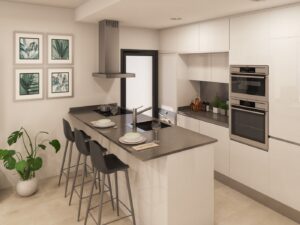 NIEUWBOUW RESIDENTIEEL IN PRIVE-GATED RESORT IN DE PROVINCIE MURCIA Nieuwbouw wooncomplex heeft 60 appartementen verdeeld over 4 blokken met terrassen voor de begane grond, eerste en tweede verdieping, gemeenschappelijk zwembad, verwarmd zwembad en solarium met zomerkeuken op de penthouses, om alle uren van de zon te genieten elke dag van het jaar. De woningen hebben 2 slaapkamers en 2 badkamers, evenals een parkeerplaats en berging in de kelder. Deze woningen zijn ontworpen met een eigentijdse stijl en open gepland concept, bestaande uit een volledig uitgeruste keuken en woon-eetkamer. De woningen zullen voldoen aan de hoogste normen en zijn inclusief: Keuken volledig ingericht en uitgerust met oven en magnetron in kolom, geïntegreerde koelkast en vaatwasser, inductie kookplaat en afzuigkap. LED-verlichting: binnen in de woning (eetkamer, keuken, gangen en badkamers), en ook in de buitenruimtes. Beklede kasten met laden. Gemotoriseerde rolluiken in de slaapkamers. Verwarmde vloeren in badkamers. Volledig ingerichte badkamers met toilet, badmeubel, spiegel, douche met regeneffect en schermpanelen. Pre-installatie voor airconditioning via leidingen. Pre-installatie van oplaadpunt voor elektrische voertuigen. Solarium met zomerkeuken, met pre-installatie voor elektrische apparaten. Gemeenschappelijk zwembad. Verwarmd zwembad. Parkeerplaats en berging in de kelder. Gelegen in een prive-gated resort, met een hoofdingang en 24-uurs beveiliging. Het resort is ontworpen rond een indrukwekkende 126.000 m2 groen gebied. Het omvat wandel-en fietspaden, sportfaciliteiten, paddle-en tennisbanen, een mini-golfbaan, tuinen, honden parken, recreatiegebieden, clubhuis…. Ook in het centrale gebied is het juweel van het resort, een kristalhelder kunstmatig meer van bijna 17.000 m2 wateroppervlak, omgeven door witte zandstranden en palmbomen, die een stukje van het Caribisch gebied naar de regio Murcia brengen. Er zijn 2 eilanden in het meer, een ervan heeft zijn eigen bar, er zijn ook “strand Chiringuitos” verspreid over het meer. Het resort is strategisch gelegen op minder dan 4 km van het strand en de stad Los Alcázares, waar u verschillende watersporten kunt beoefenen, omringd door verschillende golfbanen en de stad Cartagena op minder dan 15 minuten met de auto en 22 km van de luchthaven van Murcia, waardoor u een breed cultureel, gastronomisch en sportief aanbod binnen handbereik heeft.