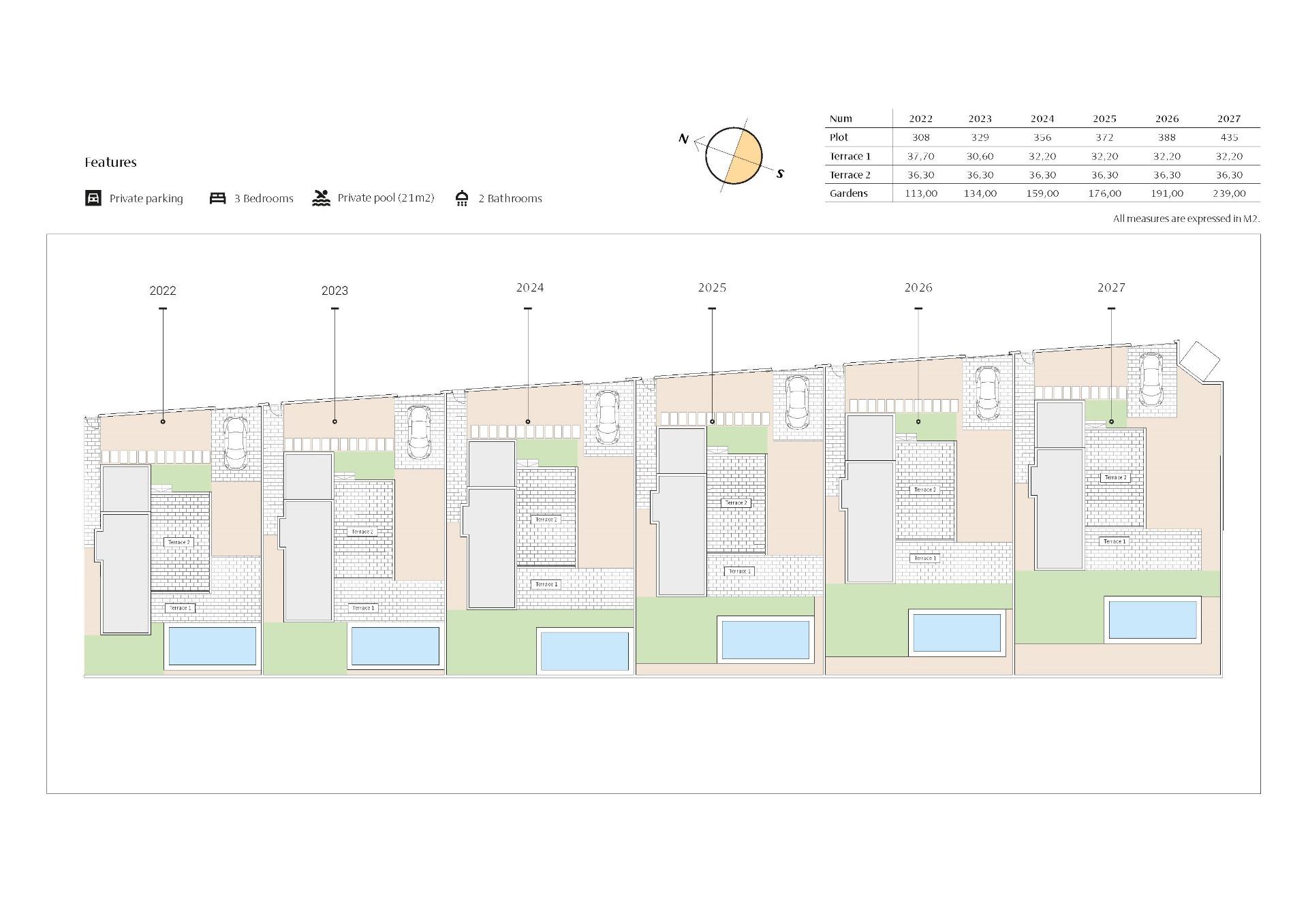 NIEUWBOUW VILLA’S IN ALGORFA Nieuwbouwcomplex met prachtige villa’s in Algorfa. Villa’s gebouwd over 2 verdiepingen, heeft 3 slaapkamers, 2 badkamers, open keuken met woonkamer, waar grote ramen zijn met directe toegang tot het terras en het zwembad. Het heeft een parkeerplaats op het perceel. Algorfa heeft een infrastructuur van hoge kwaliteit diensten die u toelaat om comfortabel te leven. Dichtbij de prachtige stranden van Guardamar en Torrevieja waar je kunt genieten van het warme water en zonnebaden voor meer dan driehonderd dagen per jaar. Bovendien vind je in deze toeristische steden winkelcentra, restaurants en uitgaansgelegenheden. De luchthaven van Alicante ligt op 40 minuten rijden en die van Murcia op 55 minuten rijden.