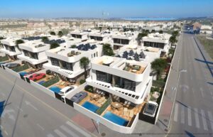 NIEUWBOUW VILLA’S IN LOS MONTESINOS Nieuwbouwproject gelegen in La Herrada (Los Montesinos), op een bevoorrechte locatie dicht bij de beste stranden van Guardamar en met alle voorzieningen die een grote gemeente als Los Montesinos biedt. Dit project heeft 32 villa’s, sommige halfvrijstaand op 2 verdiepingen en andere onafhankelijk op een enkele verdieping, die worden geleverd met de beste apparatuur, waaronder solarium, badschermen, tuin afgewerkt met kunstgras van de beste kwaliteit, decoratieve tuinelementen, en pre-installatie voor zonnepanelen, stopcontact en deurmotor voor voertuigen. Villa heeft 3 slaapkamers, 3 badkamers, open keuken met woonkamer, inbouwkasten, terras. Het typische dorpje Los Montesinos is strategisch gelegen op 10 minuten rijden van de stranden en de vrije tijd van Torrevieja (met alle diensten van een grote stad: theater, 2 ziekenhuizen, internationale scholen, enz.), verschillende golfbanen en met gemakkelijke toegang tot de snelweg A7 om de luchthaven van Alicante in 20 minuten te bereiken. In de urbanisatie zijn supermarkten en bars voor de dagelijkse service, aangezien het een landelijke en rustige omgeving is. Het klimaat van dit gebied garandeert 300 dagen zon per jaar met een gemiddelde temperatuur van 20ºC, wat samen met de rijke gastronomie en het culturele en sportieve aanbod van de omgeving, dit gebied een ideale plek maakt om een tweede vakantiehuis te vestigen of een rustige plek om permanent te wonen.