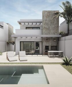 NIEUWBOUW VILLA’S IN SAN JUAN DE LOS TERREROS De eigentijdse en innovatieve architectuur van moderne villa’s komt samen in een wooncomplex in de stad San Juan de los Terreros in Pulpí, Almería, in Zuid-Spanje. Deze zorgvuldig ontworpen woningen en het wooncomplex combineren een uitzonderlijk niveau van design en kwaliteit met de hoogste normen op het gebied van duurzaamheid en welzijn. Woningen die zorgvuldig zijn ontworpen door het technische team van architecten, zodat licht, ruimte en oriëntatie elk huis en elk perceel een speciaal karakter geven. Unieke ruimtes die de deur openen naar een nieuwe levensstijl om van te genieten. De fundering en de structuur van de huizen zijn gemaakt van gewapend beton en hebben een garantie van tien jaar. Gevels ontworpen om de energiebehoefte van het huis te verminderen, gecombineerd met verschillende materialen om een esthetische consistentie te bereiken in termen van compositie en kleur zoals weergegeven in de infografieken. Ruime terrassen uitgerust met solide borstweringen om veiligheid te bieden op de terrasbalustrades, die amplitude en helderheid verlenen. De buitenomheiningen van het perceel zullen worden behandeld met dezelfde materialen die in het huis worden gebruikt, waardoor integratie in het wooncomplex wordt gegarandeerd. Geventileerde en geïsoleerde platte daken op platen, met verschillende afwerkingen afhankelijk van hun locatie en gebruik. De toegangsdeur van het huis wordt gepantserd. De deuren naar de hoofdslaapkamer, secundaire badkamers en toiletten worden voorzien van sloten. Het buitenschrijnwerk bestaat uit ramen en openslaande deuren van gelakt aluminium met rolgordijnen van aluminium lamellen, gemotoriseerd in de woonkamers. Video-intercomsysteem, dat individuele toegangscontrole garandeert voor elk van de huizen. De badkamers zijn uitgerust met een wastafel, toilet en douche, en de toiletten hebben een toilet en wastafel. De badkamers zijn voorzien van modern design sanitair, gemaakt van wit geglazuurd porselein, van het merk Roca en model Gap, met chromen of matzwarte eenhendel kranen om uit te kiezen. De douchewanden worden bevestigd met 8mm gehard glas met een lengte van 80cm. Elke pre-installatie is ontworpen voor een systeem van maximaal 10 panelen, die kunnen worden geïnstalleerd met een omvormer die wordt aangesloten op het elektriciteitsnet van de woning om het elektriciteitsverbruik te minimaliseren. Deze panelen worden geïntegreerd op het dak, in de installatiezone, verborgen van de buitenkant van de woning. De luchttoevoer naar de woningen wordt verzekerd door het inbouwen van een microventilatiesysteem in de ramen van woon- en slaapkamers. Onafhankelijke rookafvoer voor de afzuigkap in de keuken. Een pre-installatie van domotica in de woning met voorbereiding voor een toekomstige installatie van domotica voor het regelen van het klimaat en de verwarming in de kamer, jaloezieën en mogelijke inbraakalarmsystemen. Pre-installatie van videobewaking op de parkeerplaats en binnenzones van het perceel. Elke woning krijgt een volledig geïnstalleerde keuken afgewerkt in mat wit, volgens ontwerp, met een GOLA-systeem. De binnenkasten zullen wit zijn, met scharnierende deuren en laden met remmen onder de keramische kookplaat, klaar om zichtbare apparatuur te installeren. Apparaten zijn niet inbegrepen. Slaapkamers met ingebouwde kasten worden geleverd met schuifdeuren in mat wit. Deze woningen zullen energiezuinig zijn en weinig vervuiling veroorzaken. Ze zijn ontworpen met een focus op grotere efficiëntie voor lager energieverbruik, waardoor rationeel energiegebruik wordt gestimuleerd en tegelijkertijd zorg wordt gedragen voor het milieu, de kwaliteit en het klimaatcomfort in de woning. Glas met een lage emissiviteit voorkomt warmteverlies naar buiten, wat resulteert in economische besparingen door warmte in de woning vast te houden in de winter en te voorkomen dat warmte binnenkomt in de zomer. De HVAC- en warmwatersystemen zijn ontworpen met individuele systemen om het verbruik en de efficiëntie van elke woning te maximaliseren. San Juan de los Terreros is een kustgehucht dat deel uitmaakt van de gemeente Pulpí. Het staat bekend om zijn prachtige stranden, de laatste van Andalusië. Voor de kust van San Juan de los Terreros liggen twee kleine vulkanische eilandjes die het natuurmonument Isla de Terreros-Isla Negra vormen. Het meest karakteristieke monument van de stad is het kasteel van San Juan de los Terreros, gebouwd in 1764 op een voorgebergte vanwaar, op heldere dagen, een groot deel van de kustlijn van Almería en Murcia te zien is. Geïntegreerd in de rust en schoonheid van de eigen natuur, badend in stranden en baaien met kristalhelder water, geclassificeerd als een van de beste van Spanje. Omringd door beschermde natuurlandschappen die ons vervullen met rust en ons tegelijkertijd opladen met energie, dankzij een bruisend gastronomisch, sociaal en sportief aanbod. Exclusieve restaurants, sportclubs en natuurlijk uitstekende golfbanen met uitzicht op zee zoals Aguilón Golf. Een perfecte bestemming om het hele jaar door met het gezin van te genieten.
