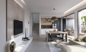 NIEUWBOUW VILLA’S IN TORRE DE LA HORADADA Exclusieve Residentie van 2 luxe villa’s met uitzicht op zee in “Las Higuericas” strand, Torre de la Horadada. Elke villa heeft een onafhankelijke toegang van de omliggende straten, aangezien er geen aangrenzend gebouw is. Weinig verkeer straten met grote groene gebieden rond de residentiële, deze aspecten zijn ideaal voor jonge familieleden. De villa’s hebben een perceel van 336m² of 338m², en een bebouwde oppervlakte van 211m². De villa’s worden gebouwd met drie slaapkamers, maar het is ook mogelijk om ze te bouwen met 4 slaapkamers. Een van de slaapkamers is voorzien van een complete badkamer. De keuken is volledig afgewerkt, met hoogwaardige materialen gekozen door de eigenaar, inclusief de apparatuur. Volgens een open concept is de eetkamer omgeven door grote ramen, die een bron van aangenaam daglicht bieden, met directe toegang tot het zwembad en de afgewerkte tuinen met verlichting, irrigatie en lokale vegetatie. Dankzij het ontwerp en de verdeling van het interieur wordt in alle villa’s een microklimaat bereikt dat zich uitstrekt tot elke leefruimte. Bovendien wordt met de thermische en akoestische isolatie een harmonische en comfortabele omgeving verkregen. Dit alles zorgt ervoor dat de villa duurzaam is en het milieu respecteert. Geselecteerde afwerkingen, het gebruik van hoogwaardige materialen, aangepast luxe design en maximaal comfort in combinatie met warme en koude airconditioning in alle ruimtes, betekent dat het genot van de villa wordt bereikt in warme zomers en ook in zachte winters, zodat het mogelijk is om hier het hele jaar door te leven. Zonder te vergeten een overdekte garage en parkeerplaats met onafhankelijke ingang voor 2 auto’s. Torre de la Horadada ligt ten zuiden van Alicante op een prachtige locatie aan de kust. De prachtige stranden van Torre de la Horadada en Mil Palmeras hebben fijn zand mooie promenade. Er zijn veel restaurants, bars en winkels, ook watersporten, duiken en snorkelen. Het is goed verbonden op slechts 40 minuten van Alicante en Murcias Corvera luchthavens, met grote commerciële winkelcentra en meerdere golfbanen allemaal binnen handbereik. 971