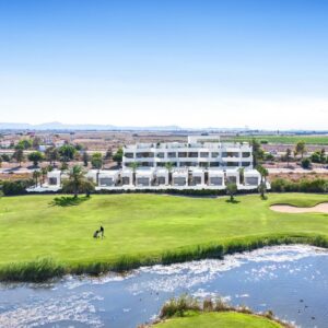 Nieuwbouw wooncomplex in Los Alcazares Los Alcázares is een idyllische locatie voor wie wil investeren in een nieuwe woning aan de Costa Cálida. Dit gebied ligt op slechts 25 minuten van de luchthaven van Murcia en ongeveer 55 minuten van de luchthaven van Alicante en is via de snelweg goed verbonden met grote steden als Cartagena, Murcia en Alicante, maar ook met andere prachtige stranden langs de Costa Cálida en de Costa Blanca. De nieuwbouw bestaat uit 16 moderne 2- en 3-slaapkamerappartementen en 6 exclusieve villa’s met 3 slaapkamers. Deze woningen combineren modern design met kwaliteit en functionaliteit, en zijn geschikt voor verschillende levensstijlen. Bewoners kunnen genieten van een prachtig uitzicht op zowel de golfbaan als het pittoreske Mar Menor, wat de algehele woonervaring verbetert. Deze locatie ligt direct aan de eerste lijn van de prestigieuze La Serena golfbaan, bekend om de met elkaar verweven meren en weelderige vegetatie, en is een paradijs voor golfers. De baan heeft waterhindernissen op 16 van de 18 holes en biedt unieke uitdagingen en strategisch spel voor alle niveaus. Bovendien biedt het terrein directe toegang te voet tot het stadscentrum, zodat bewoners de rustige schoonheid van het gebied kunnen ervaren en tegelijkertijd toegang hebben tot plaatselijke voorzieningen en diensten. De Mar Menor, de grootste zoutwaterlagune van Europa, is een van de belangrijkste attracties van de regio, met een oppervlakte van 170 km² en vijf charmante eilanden. Het warme, kalme water en de zachte golven maken het een ideale bestemming om te zwemmen en een verscheidenheid aan watersporten te beoefenen, aantrekkelijk voor zowel natuurliefhebbers als avonturiers. Dit exclusieve wooncomplex in Los Alcázares is niet zomaar een huis, maar een keuze voor een levensstijl, waarbij luxe wonen wordt gecombineerd met de natuurlijke schoonheid van de Costa Cálida. Of je nu een fervent golfer bent, een watersportliefhebber of gewoon op zoek naar een sereen toevluchtsoord aan de kust, deze locatie biedt een unieke kans om te genieten van het beste van het mediterrane leven.