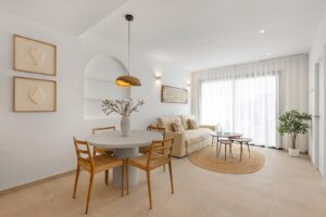 Nieuwbouw wooncomplex nabij Serena Golf en de Mar Menor in Los Alcazares Modern wonen aan de kust van de Costa Calida Ontdek dit aantrekkelijke nieuwbouw wooncomplex in Los Alcazares, een van de populairste badplaatsen aan de Costa Calida. Gelegen op slechts 500 m van de stranden van de Mar Menor en op loopafstand van het stadscentrum, biedt dit project een uitstekende combinatie van wonen aan de kust, een golfomgeving en dagelijks gemak. Los Alcazares staat bekend om zijn ontspannen sfeer, lange promenades, warme ondiepe wateren en een breed scala aan restaurants, winkels en diensten die het hele jaar door geopend zijn. Eigentijdse appartementen ontworpen voor comfort Het project bestaat uit 29 moderne woningen met 2 of 3 slaapkamers, ontworpen met strakke architectonische lijnen en hoogwaardige afwerkingen. Kopers kunnen kiezen tussen appartementen op de begane grond met een eigen tuin en terras, woningen op de middelste verdieping met ruime terrassen of penthouses met een eigen terras en een dakterras met vrij uitzicht. Veel van de woningen bieden uitzicht op Serena Golf en de Mar Menor, wat zorgt voor een rustige en aangename leefomgeving. Alle woningen zijn ontworpen om natuurlijk licht en functionaliteit te maximaliseren, waardoor ze ideaal zijn als permanente woning, vakantiehuis of investeringsobject. Hoogwaardige voorzieningen en gemeenschappelijke ruimtes Elke woning beschikt over een eigen parkeerplaats en een berging. De specificaties zijn ontworpen met het oog op comfort en energie-efficiëntie, met onder meer dubbele beglazing met thermische onderbreking, voorinstallatie van airconditioning, aerothermisch systeem voor warm water, elektrische rolluiken in de slaapkamers en een compleet pakket binnen- en buitenverlichting. De badkamers worden volledig uitgerust geleverd met meubilair, spiegel en douchewand. Bewoners kunnen genieten van aantrekkelijke gemeenschappelijke ruimtes met aangelegde tuinen en een gemeenschappelijk zwembad, perfect om te ontspannen en te genieten van het mediterrane klimaat. Bepaalde blokken zijn uitgerust met liften voor extra gemak. Toplocatie tussen golf en zee Dit wooncomplex ligt op een bevoorrechte locatie naast Serena Golf, een van de meest gerenommeerde golfbanen in de omgeving, en op slechts een korte wandeling van het rustige water van de Mar Menor. Het gebied is het hele jaar door ideaal om te zwemmen, zeilen, paddleboarden en andere watersporten te beoefenen. Belangrijke afstanden zijn onder andere de stranden van Mar Menor op 0,5 km, Serena Golf direct naast het complex, het centrum van Los Alcazares op 2 km, Cartagena op 22 km en de stad Murcia op 40 km. De luchthaven Murcia Corvera ligt op ongeveer 30 km afstand en de luchthaven van Alicante op ongeveer 90 km. Een ideale woning of investeringsmogelijkheid Met zijn uitstekende ligging, moderne ontwerp en nabijheid van zowel golf als de zee, biedt dit nieuwe wooncomplex in Los Alcazares een uitstekende kans om te genieten van een geweldige levensstijl aan de Costa Calida. Neem vandaag nog contact met ons op voor meer informatie of om een privébezichtiging te regelen en uw nieuwe woning aan de Mar Menor veilig te stellen. 971