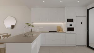 Nieuwbouwappartementen in La Nucía met alle voorzieningen in de buurt Moderne woningen in het hart van La Nucía Dit exclusieve woonproject ligt in La Nucía, een van de meest gewilde plaatsen aan de Costa Blanca, op slechts 7 km van de zandstranden van Benidorm en Altea. De wijk ligt in de nieuwe en levendige wijk Ciudad del Deporte en biedt een perfecte mix van natuur, comfort en modern wonen. In de buurt vindt u ultramoderne sportfaciliteiten, een nieuw gepland winkelcentrum, scholen en alle essentiële voorzieningen voor het dagelijks leven. De luchthaven Alicante-Elche ligt op ongeveer 60 km afstand, waardoor zowel bewoners als bezoekers verzekerd zijn van een uitstekende verbinding. Stijlvolle appartementen ontworpen voor comfort Het project biedt appartementen met 2 en 3 slaapkamers, gelijkvloerse woningen met privétuinen en penthouses met ruime solariums. Elke woning beschikt over open en lichte woonruimtes die zijn ontworpen om het natuurlijke licht te maximaliseren en binnen en buiten naadloos met elkaar te verbinden. Grote terrassen bieden de perfecte omgeving om het hele jaar door te genieten van het milde mediterrane klimaat. Exclusieve gemeenschappelijke voorzieningen Bewoners profiteren van uitzonderlijke gemeenschappelijke ruimtes die zijn ontworpen voor ontspanning en recreatie. Een groot gemeenschappelijk zwembad met een apart kindergedeelte is de perfecte plek om af te koelen op warme dagen, terwijl de aangelegde tuinen en de kinderspeeltuin ruimte bieden voor het hele gezin. Voor wie fitness en wellness belangrijk vindt, zijn er een volledig uitgeruste fitnessruimte en een moderne sociale club beschikbaar in het complex, waardoor een uitnodigende gemeenschap ontstaat. Premium kwaliteit en duurzaam ontwerp Elke woning is gebouwd met hoogwaardige materialen en afwerkingen, waaronder PVC of gelakte aluminium ramen met thermische onderbreking en dubbele beglazing, gepantserde toegangsdeuren en aerothermische systemen voor efficiënte warmwaterproductie en klimaatbeheersing. De keukens zijn volledig uitgerust met boven- en onderkasten, inductiekookplaten, ovens, afzuigkappen en magnetrons, terwijl de badkamers worden geleverd met meubels, spiegels en douchewanden. Elk appartement heeft ook een eigen parkeerplaats en een berging in de kelder. Een perfecte locatie, omgeven door natuur en recreatiemogelijkheden La Nucía staat bekend om zijn rustige omgeving, omgeven door mediterrane pijnbossen en uitzicht op de bergen, terwijl het toch gemakkelijk toegang biedt tot de levendige kustplaatsen Benidorm en Altea. Golfliefhebbers vinden verschillende topbanen binnen een straal van 15 km en de bruisende winkelcentra van Finestrat liggen op slechts 10 km afstand. Verzeker u vandaag nog van uw nieuwe woning in La Nucía en omarm de mediterrane levensstijl aan de Costa Blanca.