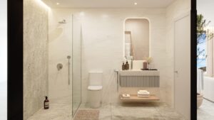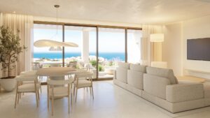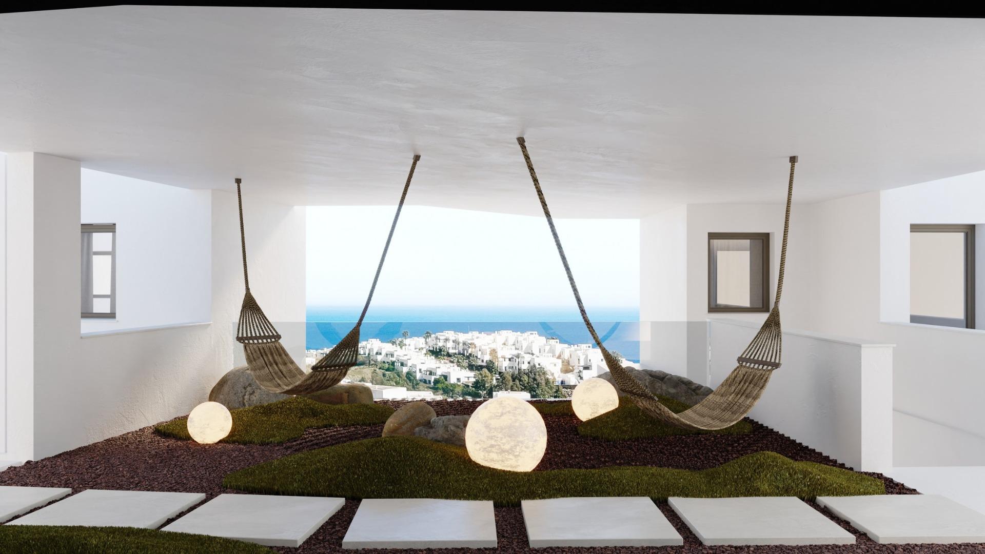 Panoramisch uitzicht op de Middellandse Zee in een resort aan het strand