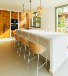 Sleutelklare villa in mediterrane stijl in Javea met privézwembad en groot perceel Exclusieve nieuwbouwwoning in Valle del Sol Ontdek deze prachtige, sleutelklare villa in de rustige urbanisatie Valle del Sol, op slechts een klein eindje rijden van het centrum van Javea en op slechts 2,5 km van het populaire strand El Arenal. Het pand is ontworpen met een mix van mediterrane en Ibiza-invloeden en heeft zachte, gebogen lijnen, zichtbare houten balken en gewelfde plafonds die een warme en authentieke sfeer creëren. Grote ramen met luiken vullen het huis met natuurlijk licht, wat het gevoel van rust en comfort versterkt. Elegante indeling op één niveau De villa is gebouwd op een royaal perceel van 1000 m2 en is voor maximaal comfort verdeeld over één verdieping. Het omvat een lichte woon-eetkamer, een volledig uitgeruste keuken, een bijkeuken, drie ruime slaapkamers met inbouwkasten, drie en suite badkamers en een gastentoilet. Elk detail is zorgvuldig gekozen, met handgemaakte natuurstenen elementen en houten balken die de traditionele charme van de Costa Blanca Noord weerspiegelen. Buitenruimtes ontworpen om te ontspannen De buitenkant van de villa biedt een ideale omgeving om te genieten van de mediterrane levensstijl. Een prachtig aangelegde tuin, een turquoise zwembad en zonovergoten terrassen bieden de perfecte ruimte om het hele jaar door te dineren, te entertainen en te ontspannen. De woning beschikt ook over een pergola met ruimte voor twee auto’s, zonnepanelen, airconditioning met twee zones, een video-intercom, een alarmsysteem en domotica voor de verlichting. Toplocatie in Javea Javea is een van de meest gewilde plaatsen aan de Costa Blanca Noord, bekend om zijn prachtige stranden, baaien, jachthavens, golfbanen, natuurparken en uitstekende gastronomie. Het milde klimaat en de hoge levenskwaliteit trekken bewoners en investeerders uit heel Europa aan. Belangrijkste afstanden vanaf de villa: El Arenal-strand 2,5 km Haven en jachthaven van Javea 6 km Golfclub van Javea 4 km Luchthaven Alicante 100 km Luchthaven Valencia 125 km Uw mediterrane thuis wacht op u Deze villa is de ideale keuze voor wie op zoek is naar een permanente woning, een luxe vakantiehuis of een hoogwaardige investering. Neem vandaag nog contact met ons op om een bezichtiging te plannen en deze uitzonderlijke woning in Javea te ontdekken.